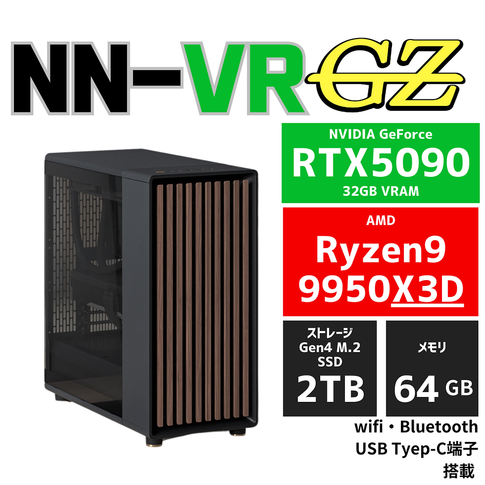 VRChatでの安定・快適な動作とUnityやBlenderなどといったクリエイターツールの操作性を両立し、VRSNSを快適に遊べるだけでなく、モンハンワイルズのような大容量ゲームから配信作業やクリエイターツールの使用まで、あらゆる性能をバランス良く組み合わせて構成になります。